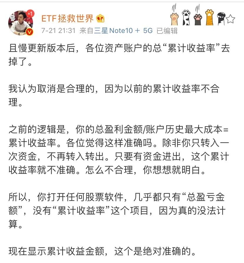 在最近的且慢APP更新中,我们撤下了累计收益率的数据展示。