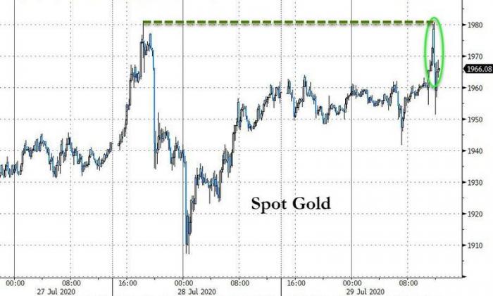 由于市场普遍将决议内容解读为鸽派,现货金上涨,并在美联储主席鲍威尔讲话期间升至每盎司1980美元,逼近周二触及的纪录高位,但之后回吐部分涨幅。