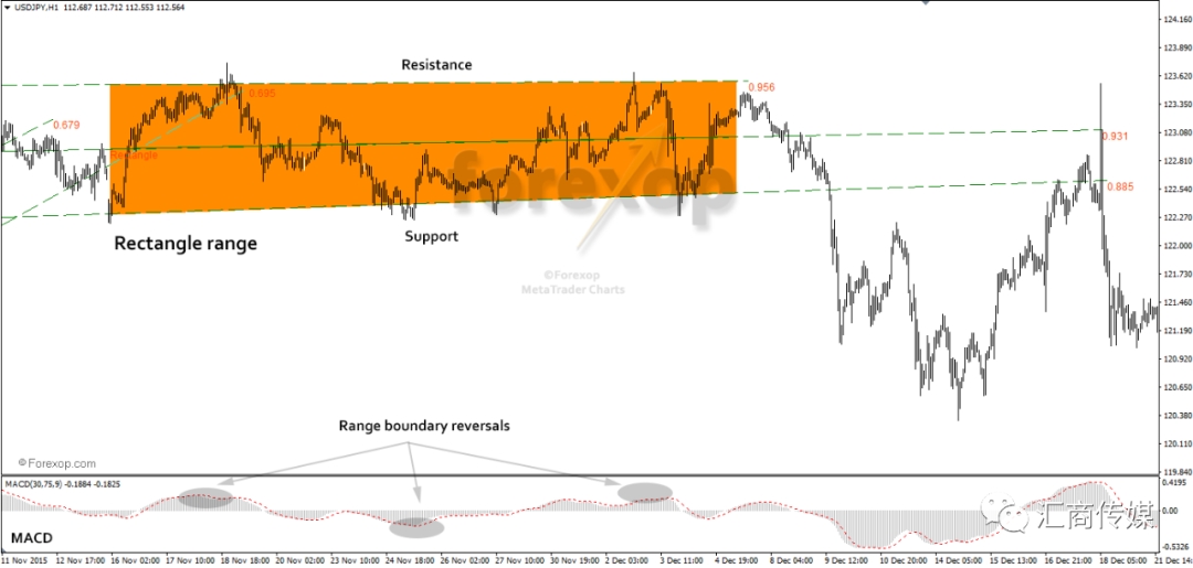 区间一般是价格限制在支撑和阻力水平之间时形成。因此交易区间的一个最简单的方法就是在区间的边界处入场或者出场,如果价格在区间顶端时就卖出,在底部时买入。