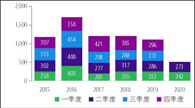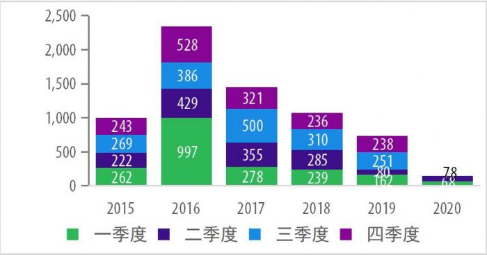 图表2:2015-2020年上半年中企宣布的海外并购情况(亿美元)