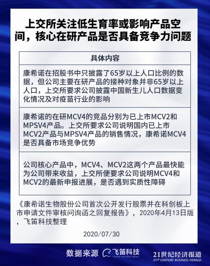 对于公司发布的招股书,上交所给出了两轮反馈意见。其中,低生育率或影响公司产品市场空间、MCV4产品是否具备竞争优势,以及主要产品申报进展是否有障碍这三大问题值得投资者关注。