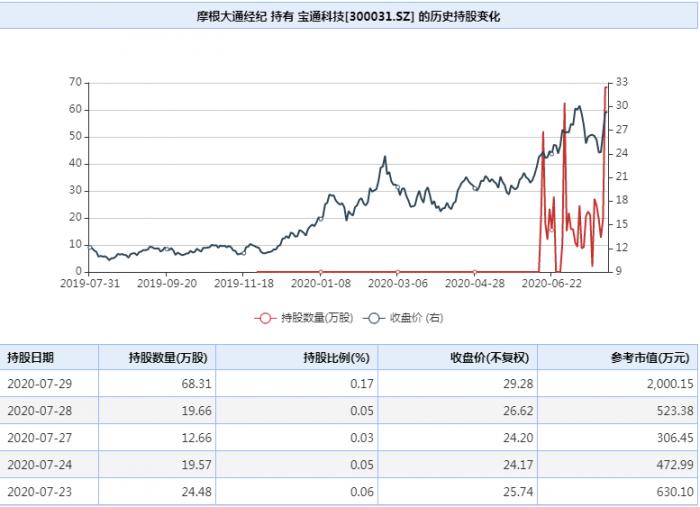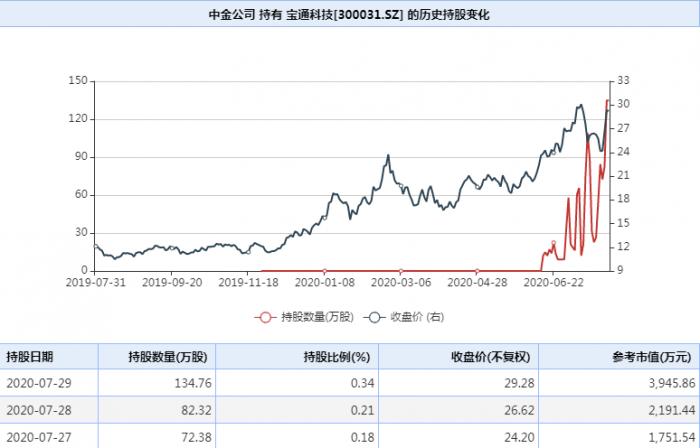 在7月28日、29日的连续涨停过程中,北向资金连续买入宝通科技,持股数量从197.1万股大幅增加到了383.6万股。
