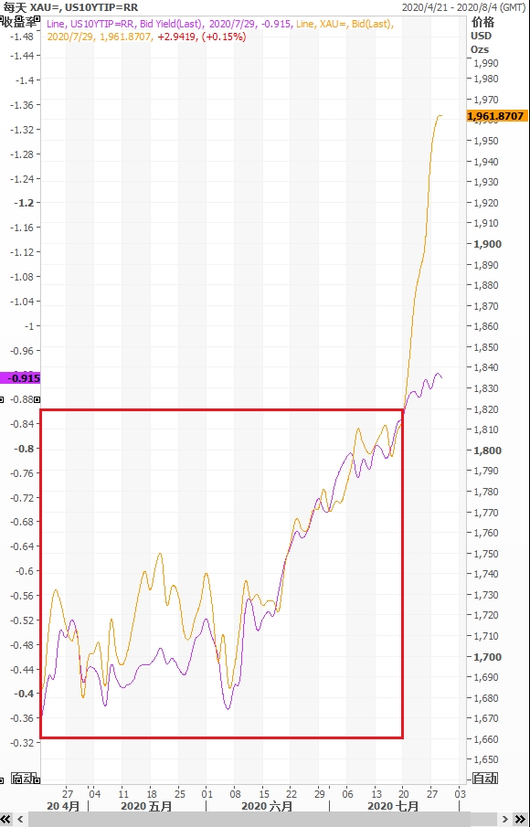 实际利率下的黄金 = 通胀 + 美债 = Tips