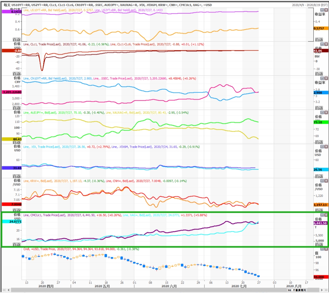 图6:图中绿色框:铜(紫色)VS 白银(荧光蓝) (资料来源:路孚特 Eikon)