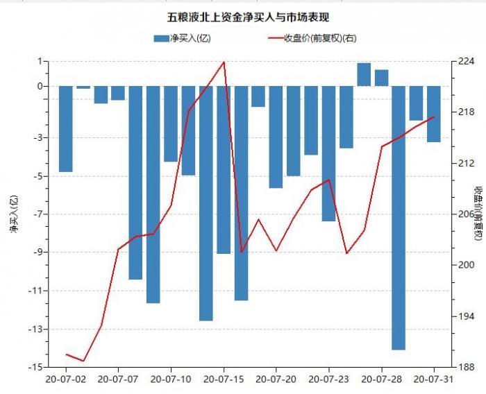 7月全月来看,五粮液、中国中免、贵州茅台分别被净卖出110.51亿元、73.91亿元、38.5亿元;中国平安、格力电器则被净买入64.06亿元、29.93亿元。