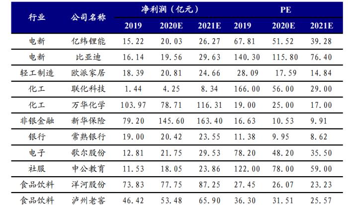 新时代证券:亿纬锂能、比亚迪、欧派家居、联化科技、万华化学、新华保险、常熟银行、歌尔股份、中公教育、洋河股份、泸州老窖。