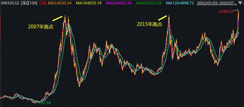 可以说深证100指数的2020年,已经超过了2007年和2015年这两个大牛市。