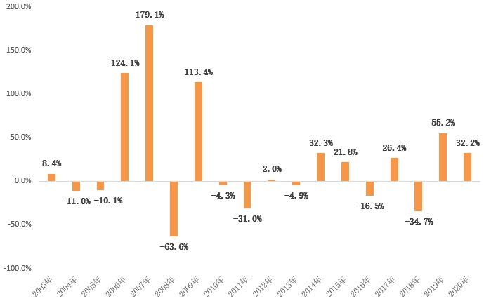 深证100上市以来的这十八年,有10个年度上涨,其中8个年度的涨幅超过20%。与之相对,只有三个年度的跌幅超过20%。