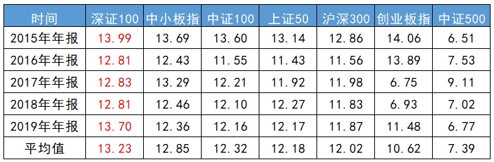 对比几大指数过去5年的ROE,深证100指数的平均值是最高的。