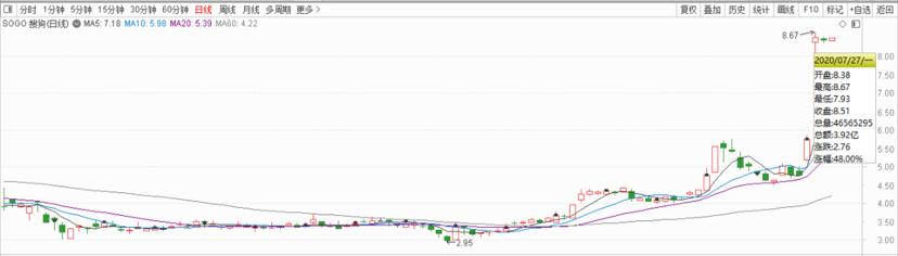 资本市场,对这场收购也是格外欢喜。消息一出,搜狗股价大涨48%,市值攀至约32.6亿美元,搜狐股价大涨39.96%,市值约6.1亿美元,二者均迎来了自己一年中的高光时刻。