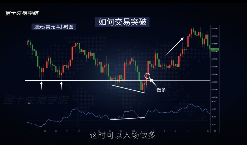 再结合背离确认趋势,这时便可以入场做多,而不是选择追随假突破。