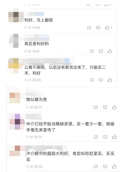 宋丁:这一政策出台后,供应0供应了,再加上住宅本来就限购,还有715新政的影响,公寓还是有市场的。但估计只会卖得比较快,交易价格不会产生太大变动。