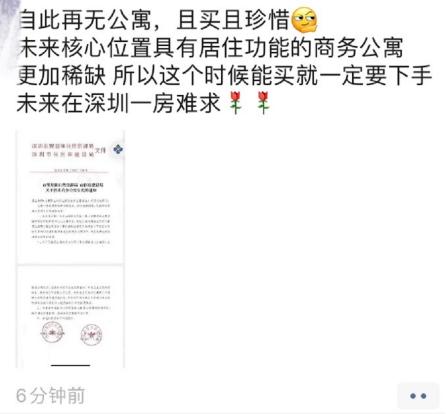 有读者爆料,政策出来没多久就接到中介电话推销南山某公寓,信誓旦旦表示公寓以后一定会涨价。