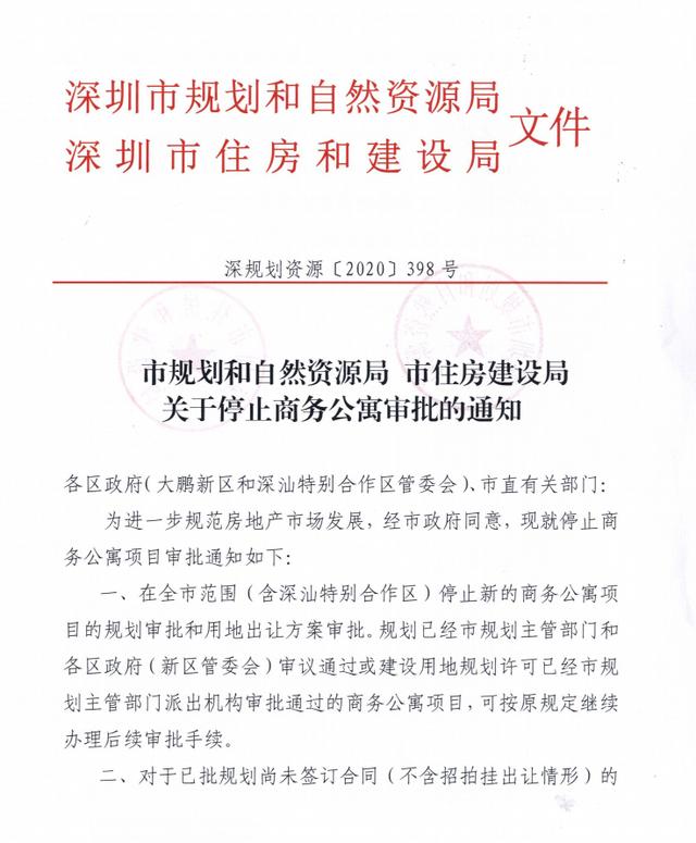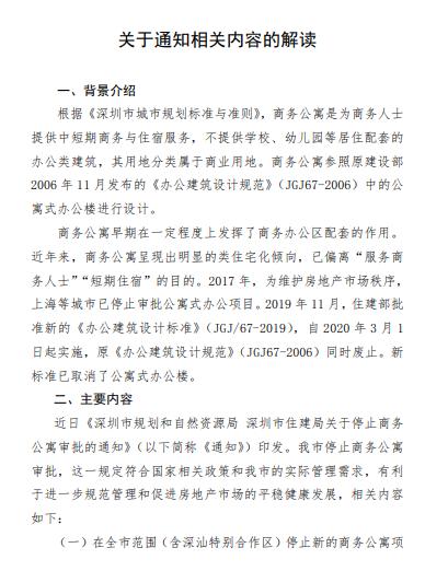 根据新政,目前深圳在售、在建和正在审批的商务公寓项目,都不受影响。