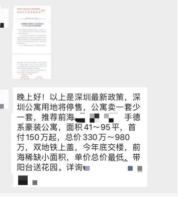 视为利好的深圳中介们,开始疯狂推销。新政出台后才一个小时,南方楼事就接到了3通推销公寓的电话。