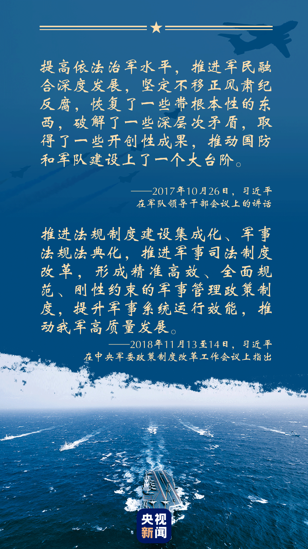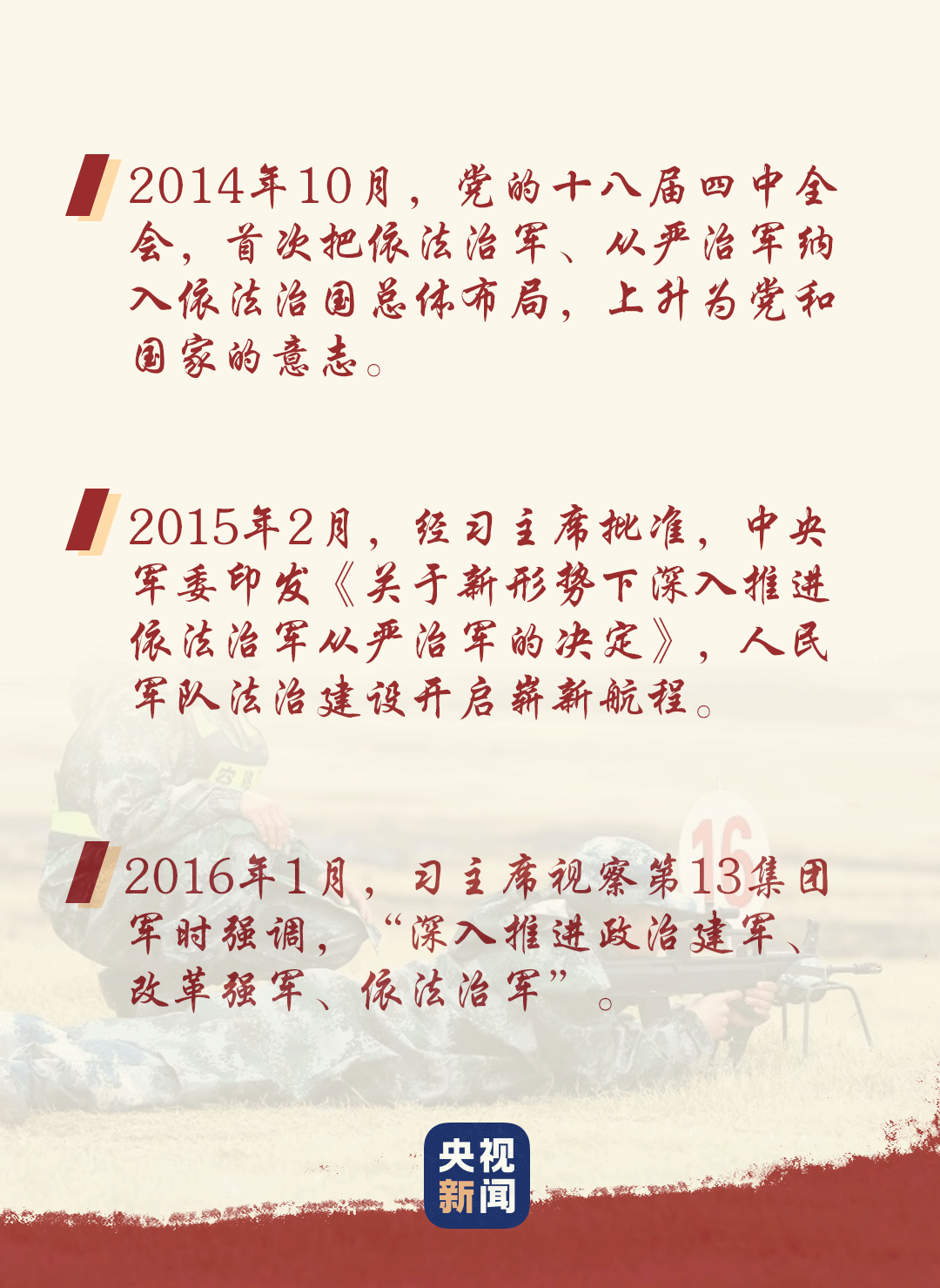 军无法不立,法无严不威。依法治军、从严治军,是历史的昭示,是时代的选择,是现代化军队建设的普遍规律。