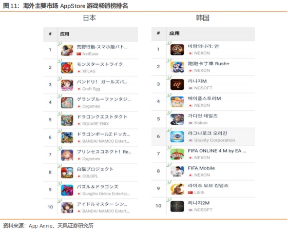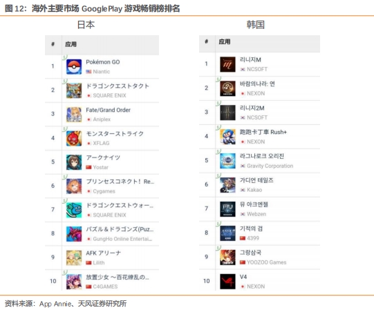【海外主要市场及中国香港、中国台湾游戏排行】