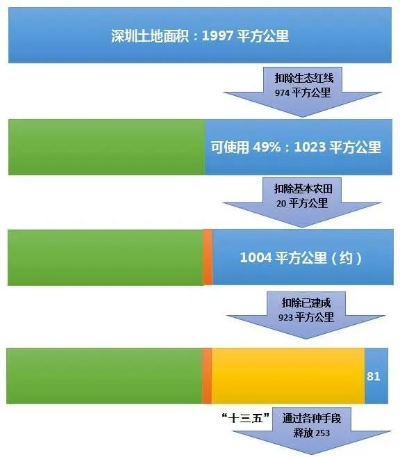 而深圳土地资源又特别紧张,全市1997平方公里,有一半的面积划入基本生态线禁止和限制开发,剩下一半的土地基本开发完毕。