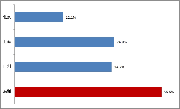 放在中国,深圳该项数据远低于北上广,略高于香港的8%。