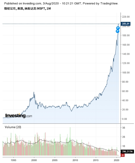 微软股价走势,来源:英为财情Investing.com