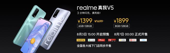 8月3日,realme发布旗下V系列首款产品——“闪充奥利给”真我V5,其搭载联发科天玑720集成式双模5G处理器,支持国内主流5G网络频段,也是realme旗下首款搭载5000mAh大容量电池、具备闪充功能的手机。