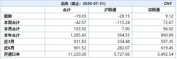回顾7月份,北向资金先流入后流出,月初连续三日扫货逾百亿,但随后持续净流出,全月合计净买入103.93亿元,其中沪股通净买入7亿元,深股通净买入96.92亿元。