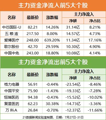 上周个股资金流: