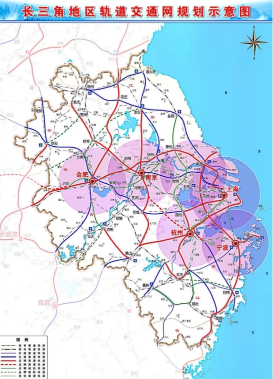 交通规划方面,长三角在今年4月已经拿出了交通运输规划,明确了“以轨道交通为骨干,公路网络为基础,水运、民航为支撑,构建对外高效联通、内部有机衔接的多层次综合交通网络。”