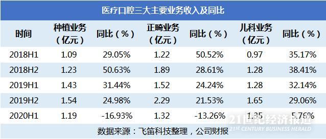 口腔业务是通策医疗最主要的收入来源,其中种植、正畸、儿科三大口腔业务又占了公司总收入的50%以上。上图是以半年为周期的公司三项业务增长情况,从中可以看出,三项业务收入和增速大多数周期都比较接近,但是今年上半年,在公司总收入下滑了12.87%的背景下,公司的儿科业务录得5.76%的同比增长,表现要远好于其他两项业务。