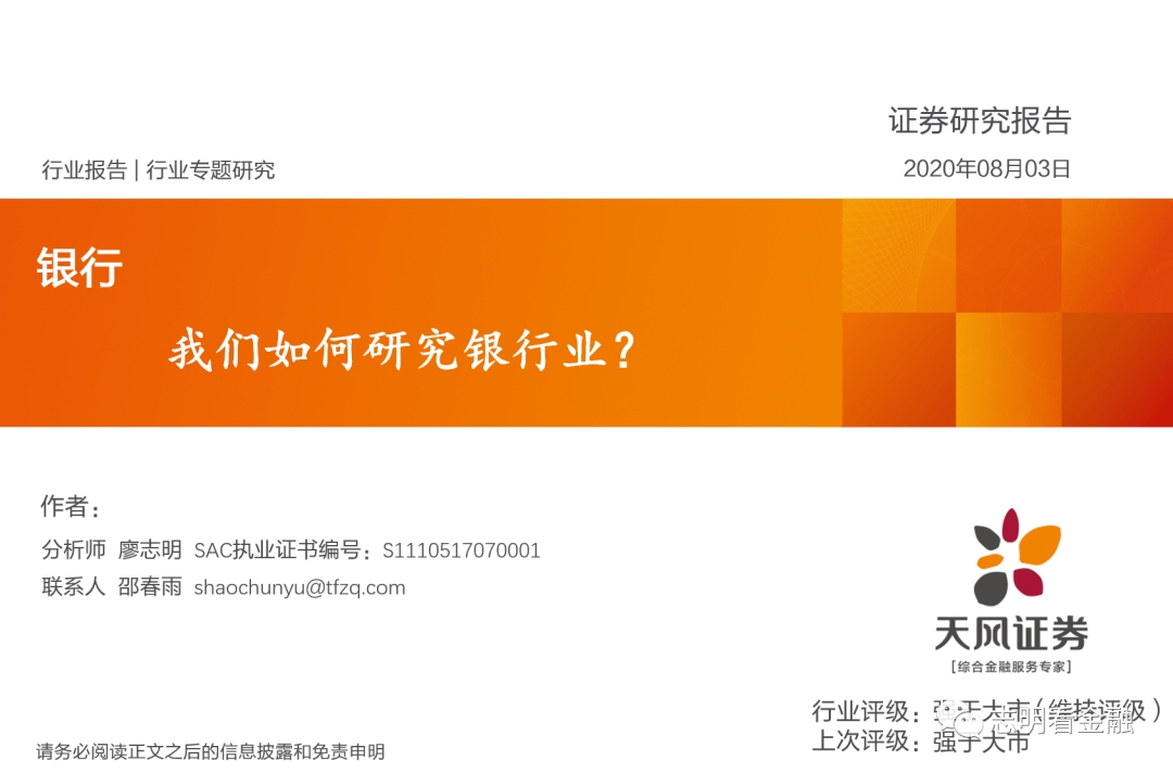 廖志明,天风证券银行业首席,籍贯江西。东京大学经济学硕士,且为全额奖学金获得者。曾就职于民生银行、交通银行等金融机构,具有商业银行总行的观察视角与分行的业务能力,对金融监管、流动性以及银行资产负债配置等有独到见解。卖方研究从业多年,曾在民生证券负责银行业研究。2017年金牛奖分析师,2018年WIND金牌分析师银行业第一名,第一财经最佳金融分析师第二名,新财富银行业第五名;2019年金翼奖分析师,WIND金牌分析师银行业第一名,新浪金麒麟最佳分析师第四名,上证报最佳分析师第三名,新财富金融产业研究第三名,银行业入围。
