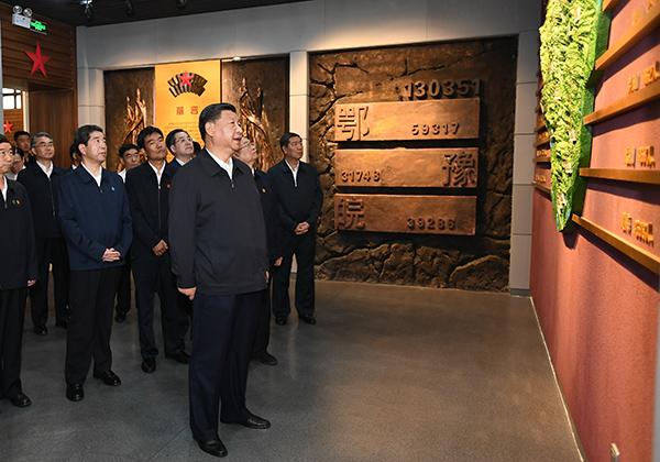 2019年9月,庆祝新中国成立70周年前夕,习近平再访大别山区。在河南省信阳市新县鄂豫皖苏区首府革命博物馆,习近平强调,“我们绝不能忘记革命先烈,绝不能忘记老区人民,要把革命老区建设得更好,让老区人民过上更好生活。”