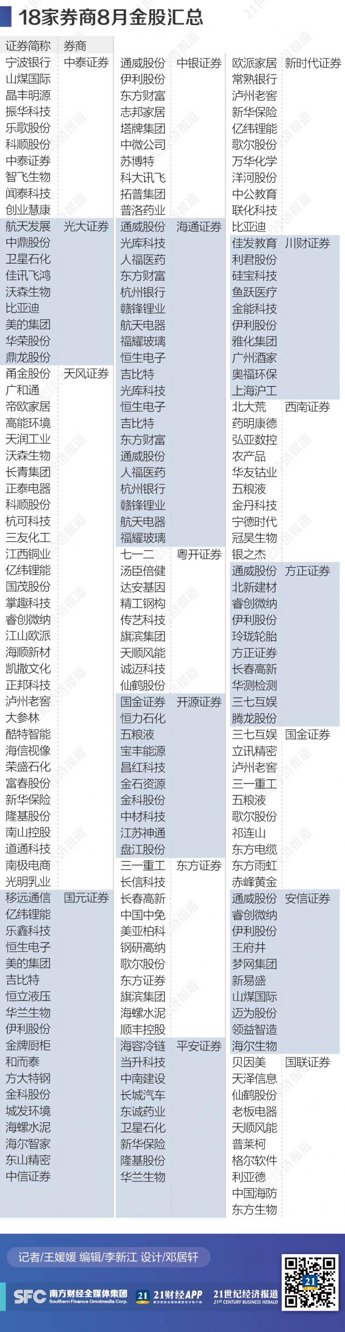 随着券商8月金股的陆续发布,各家券商对8月市场风格的判断也显现出来。多数券商仍然看好8月市场在食饮、医药、电子板块的空间,其次则是周期板块。