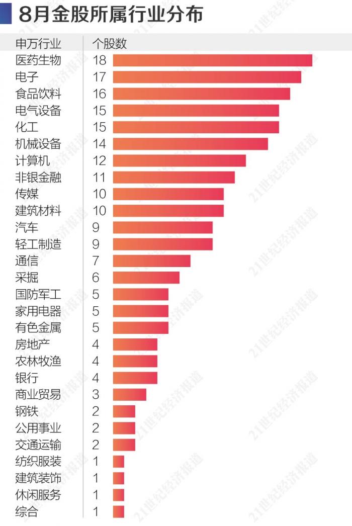 7月和8月,券商金股一致地偏爱“喝酒吃药”。但是,被偏爱的三个行业在7月表现并不十分亮眼。