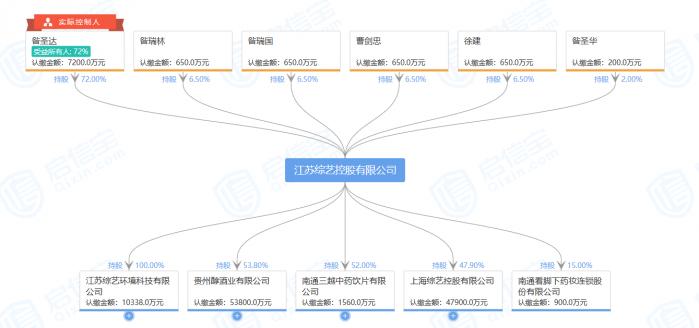 启信宝数据显示,综艺控股目前持有贵州醇53.80%股权,昝圣达还通过控股江苏境界控股有限公司持有贵州醇32.90%股权。