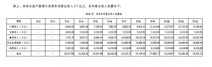 问询函回复显示,T+3年、T+4年、T+5年,金科文化预估“会说话的汤姆猫”主题商业综合体项目的门票收入、住宿收入、餐饮收入、衍生品等销售、租赁收入分别为2.93亿元、3.14亿元和3.51亿元。