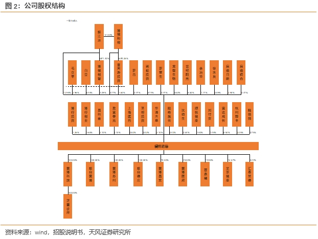 公司实际控制人为解江冰,直接持股比例12.93%,其控制的博健和创持股比例为5.77%,其控制的博健创智持股比例为4.09%,其控制的喜天游投资持股比例为1.60%,其间接持股比例合计为11.46%;一致行动人毛立平、白莹为夫妻关系,合计持股比例9.39%。公司股权结构健康,实际控制人及一致行动人拥有超过30%的股权比例。公司高管与核心技术人员多为硕博等高学历人群,具有光学、化学、生物学、医学等背景,经验丰富,拥有多项发明专利,是公司长期稳定发展的重要组成力量。