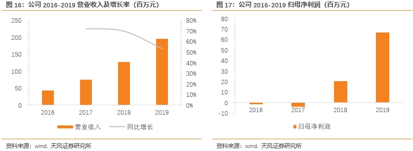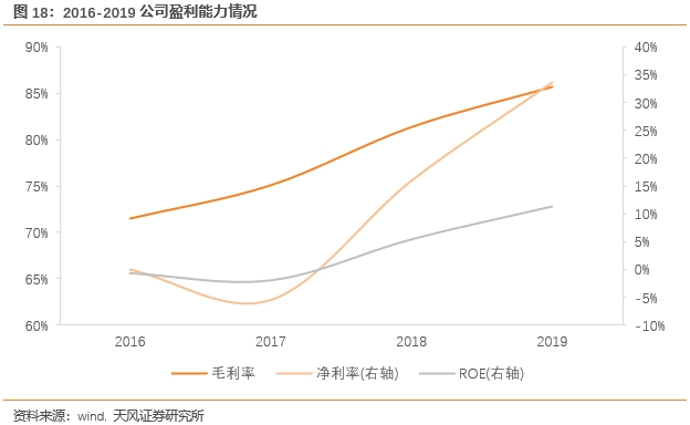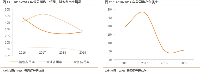 从费用端来看,公司三项费用率存在一定的波动。销售费用率受益于营业收入的大幅增长,整体呈下降趋势,19年上升系公司扩大销售团队,加大市场推广力度所致。17/18年管理费用率较高主要是由于公司进行股权激励支付了股份。