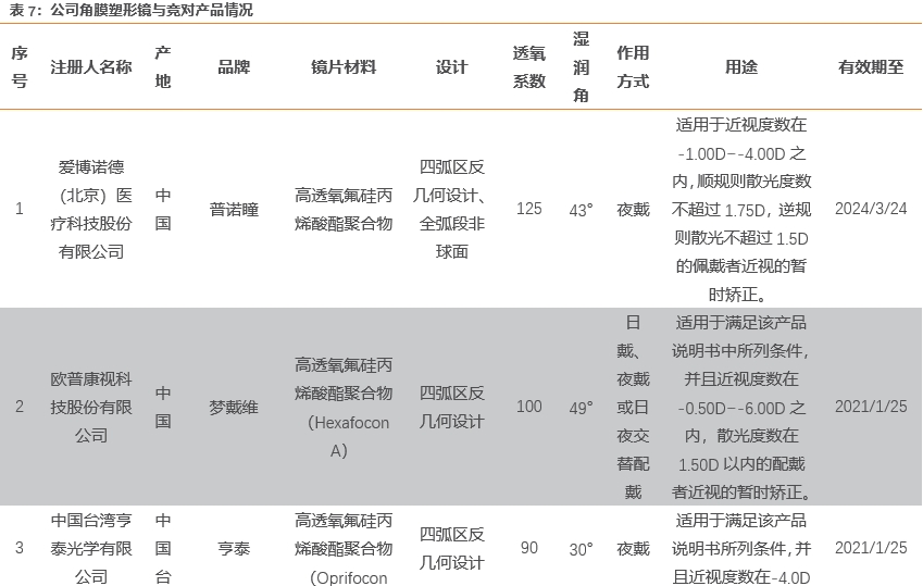 4.2. 创新基弧设计与高透氧性并举,角膜塑形镜市场空间未来可期