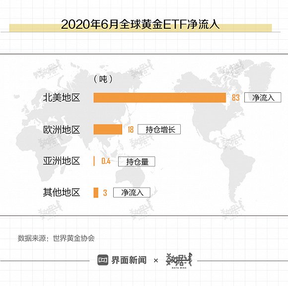 据世界黄金协会《黄金需求趋势报告》,2020上半年全球黄金投资增长了90%。随着6月黄金ETF净流入104吨,全球黄金ETF总持仓规模共计达到3621吨,创历史新高。