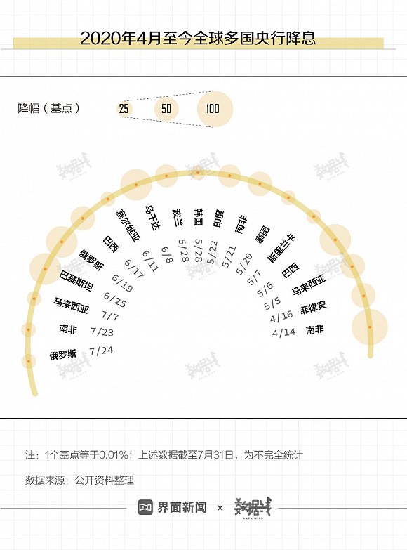 为提振经济,4月以来,至少13国央行相继官宣降息决议。北京时间7月29日,基准利率已降至零的美国,宣布维持0-0.25%基准利率不变。
