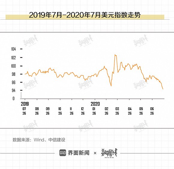 随着美联储宽松货币政策的延续,投资者对美元的信心或持续走弱。7月,美元指数降至93.49,跌幅4%,创下近10年最差单月表现。