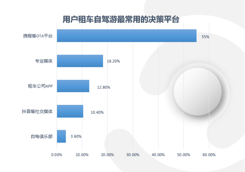 在租车信息的获取方面,2020年上半年,在线旅游平台、社交媒体等影响用户的强度明显增加。与此同时,在用户做租车出游的决策时,最终选择携程等一站式平台的比例明显上升,因为可以给用户提供车辆以外的更多服务,传统专业租车公司的比重有所下降。