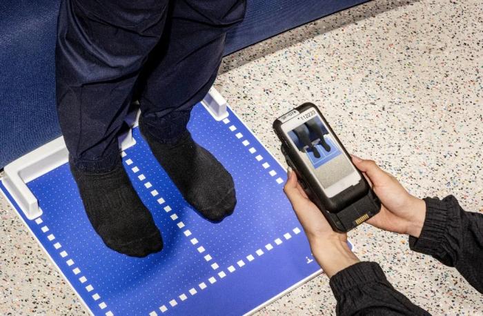 如果你像我一样常常被什么欧码、美码、中码的度量标准搞得昏头转向,不同鞋款尺寸上下各种偏差,很难找到真正合脚的鞋,那么你还可以尝试一下Nike Fit——踏上这张蓝色方形面板,用手机扫一扫,十几秒钟后,人工智能会对你的脚型作全面评估,然后得出相应的尺码范围,再根据相应鞋款,推荐该鞋款最合适你的鞋码,测量数据也将保存在Nike App 的会员资料里供今后线上线下消费参考。更贴心的是:如果你在这家店看中的鞋或衣服断货时,可以通过Nike App 实时查询库存,从其它渠道调货给你寄过去。