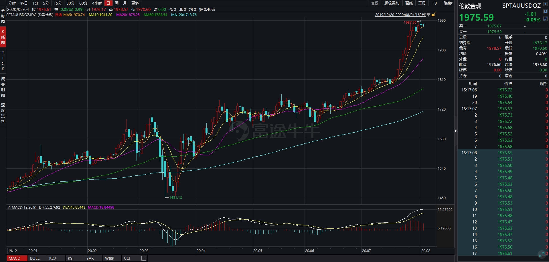 2020年8月3日,伦敦金现(SPTAUUSDOZ)冲击1987.95美元,收盘报1976.6美元,刷新历史最高价。
