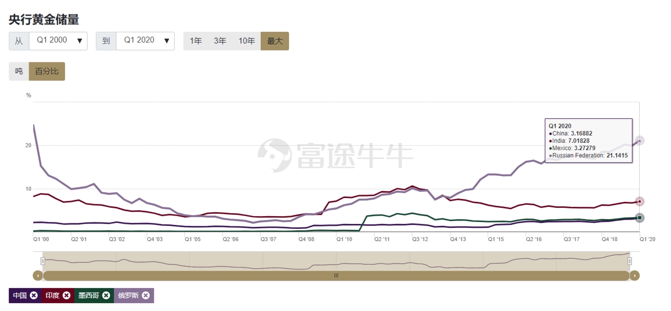 从2000年以来的几次增持操作,可以看出黄金已经不仅仅是央行的储备资产,还是结构化投资的中国要组成。现阶段在美元的不确定性越来越突出的环境下,黄金也是央行有效管理风险的工具。