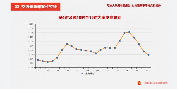 被告人年龄集中在29岁至49岁之间,占比超六成;未成年被告人占比为0.22%。从案发时间来看,早6时及晚18时至19时为案发高峰期。