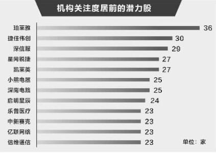从机构评级的角度来看,珀莱雅有36家机构预测未来业绩,今年、明年、2022年净利增速预测值分别为23.91%、29.99%和25.17%。捷佳伟创位居机构关注度第二位,合计30家机构预测未来业绩,今年净利增速有望超过51%,明年超过31%,2022年超过27%。此外,深信服、星网锐捷、凯莱英、小熊电器等股票均有25家以上机构评级。