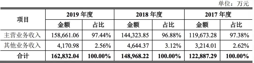 中茶股份2017年—2019年营业收入的构成和占比情况