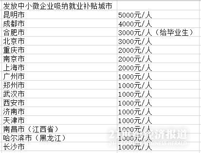 而在广州之外,一些城市尤其是西部城市,在发放就业补贴上更是“大手笔”。