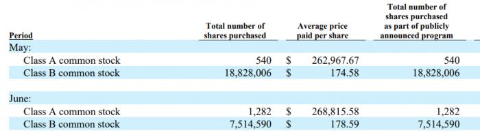 第二季度在回购股票中大约动用了51亿美元的资金,这可能是近年来该公司最高的季度回购金额;一季度伯克希尔的回购额达17亿美元,上半年合计回购额达67亿美元。